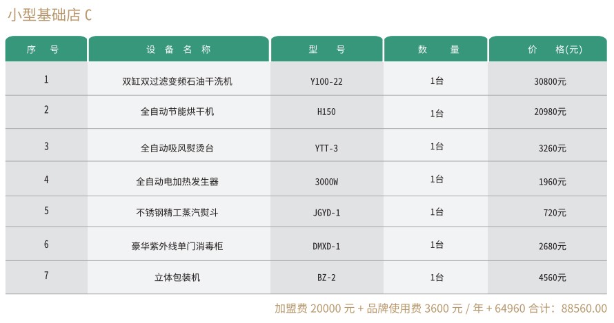 赛维洗衣干洗店有小型店、中型店、大型店、旗舰店等多种组合模式,每种模式又有多个不同的方案,以适用不同的创业人群需要,详情请往下看。
